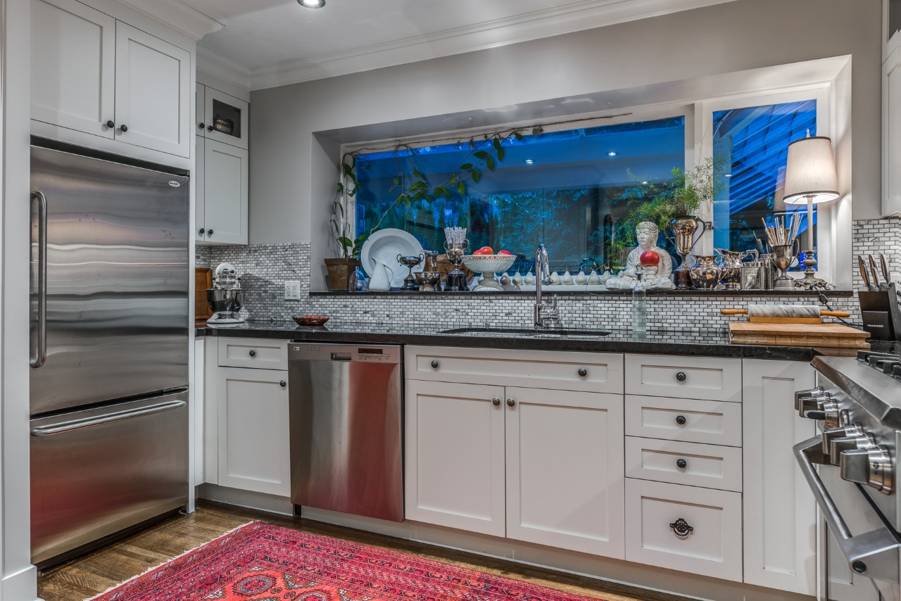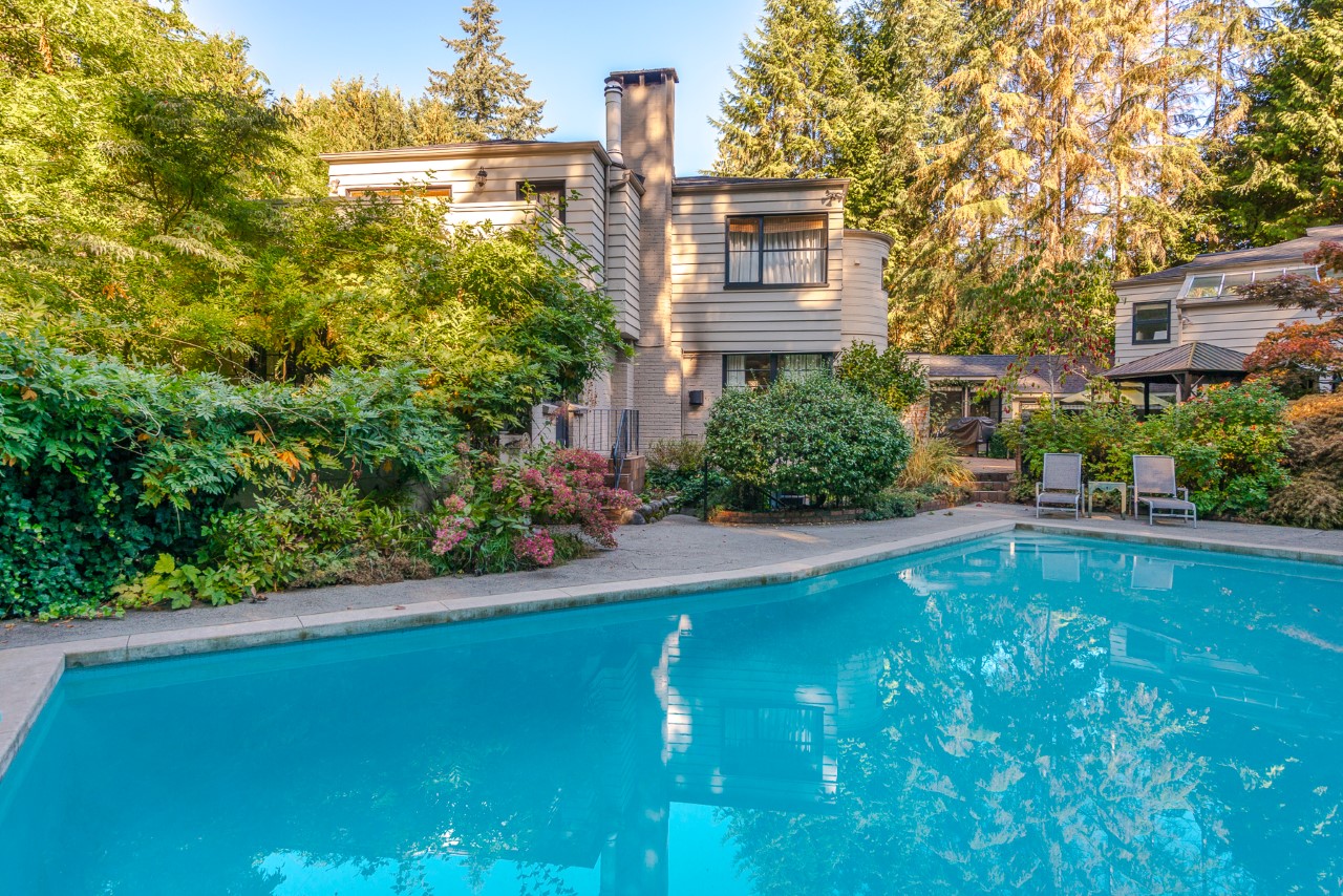 This classic split level envelope home overlooks a 24,829 sq ft lot with 2 separate residences, swimming pool, and beautiful west coast garden. The renovation is exceptional while maintaining all of the original style and design.