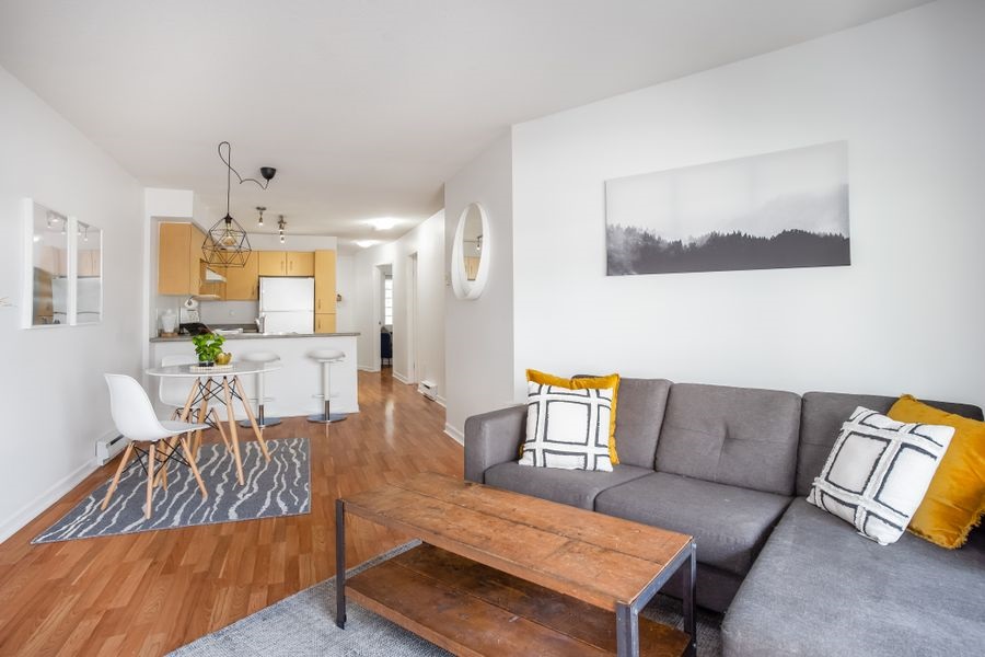 Location, location, location! In the heart of trendy Lower Lonsdale this oversized 2 bed 1 bath condo with sunny SW exposure and a quiet inside courtyard outlook, is walking steps to every great shop LoLo has to offer! Everything at your doorstep...from Lonsdale Quay, Seabus, Shipyards, to Tap & Barrel, Larry's Market and every possible shop and service you might need. Functional open plan with large dining area, spacious master bedroom with ensuite, second bedroom can easily serve as a baby/toddler/guest bedroom or office space. LARGE sunny BBQ deck overlooking the quiet courtyard. Bike room, parking, and storage locker. Rentals & pets allowed.