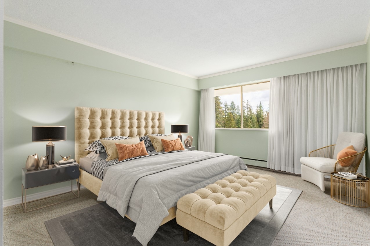 The balcony boasts 112 sq ft of beautiful outdoor space over looking the large 8 acre property below. Transit shuttle comes directly to the complex and provides transport to shopping, library & rec centre. A must see offering in one of WEST VANS best low rise CONCRETE buildings.