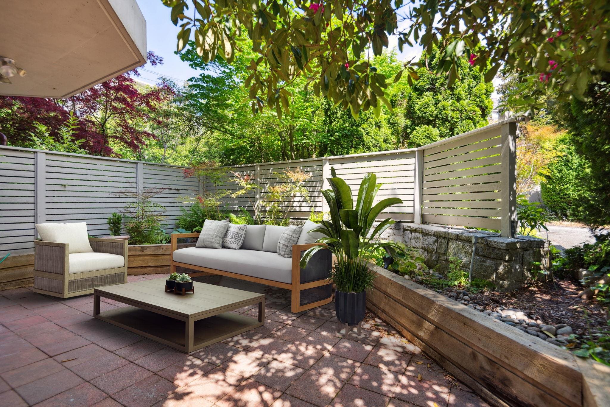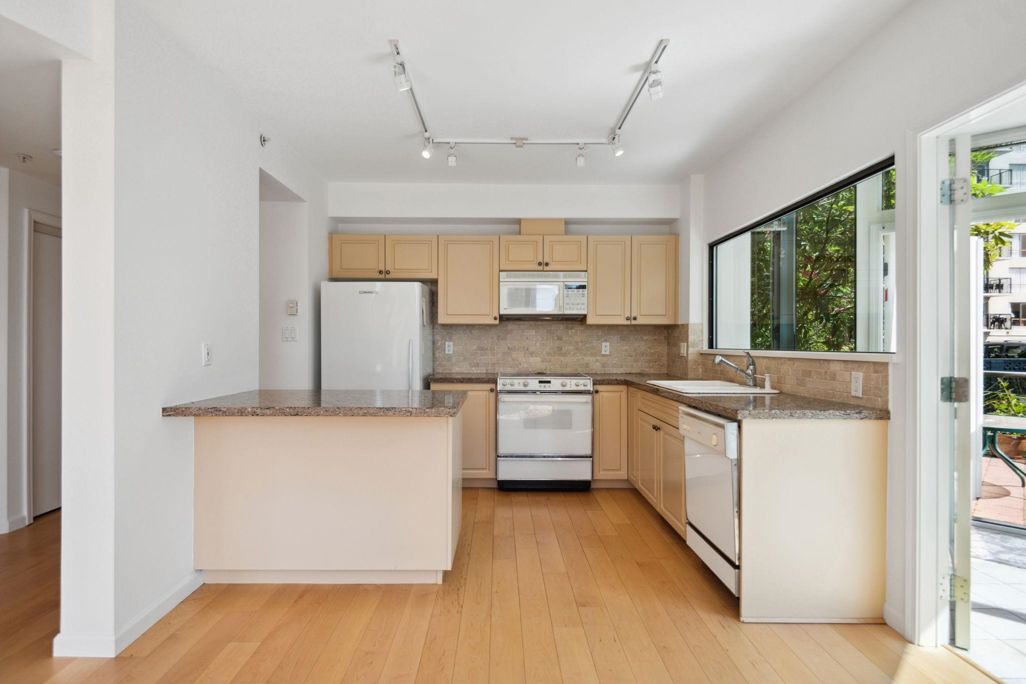 Available for the 1st time in 18 years, #102 in The Heritage is a stand alone unit in this rarely available Central Ambleside offering. The 2 bedroom, 2 bath plan boasts 3 outdoor spaces that are exclusive to the unit. The large east side patio off Solarium is perfect for a morning coffee while reading the paper but equally impressive is the large garden "walk out" off the Primary ensuite & 2nd bdrm. T