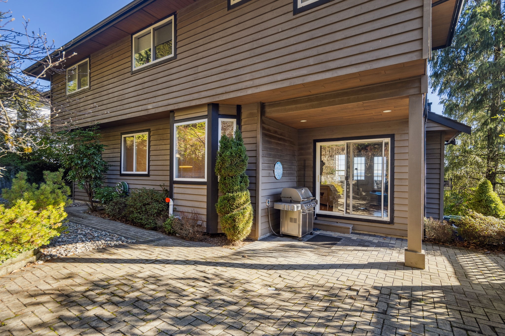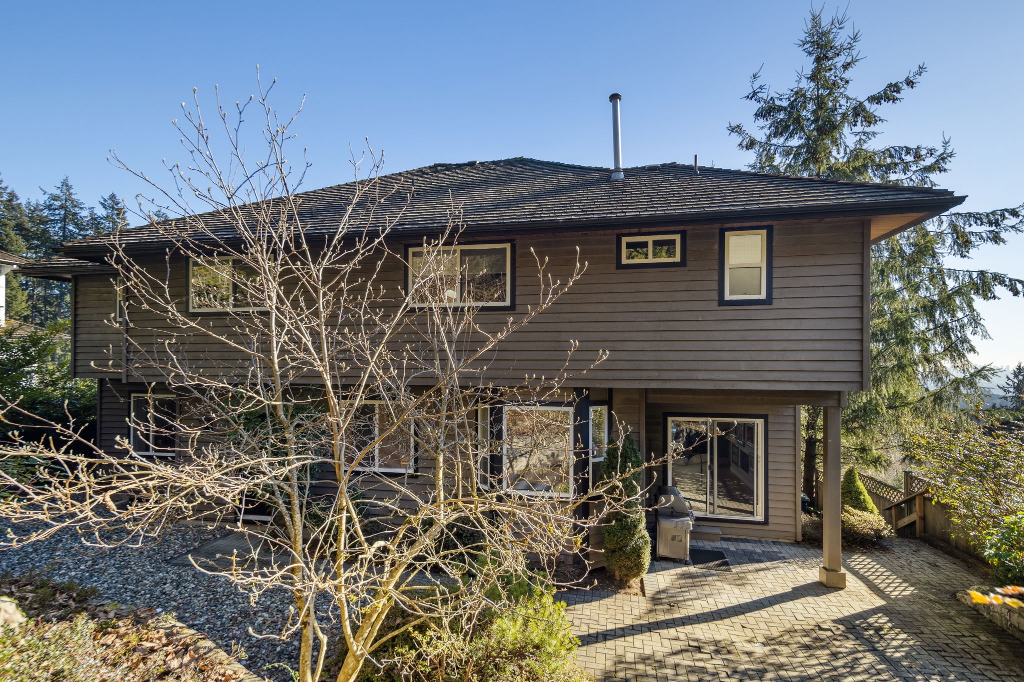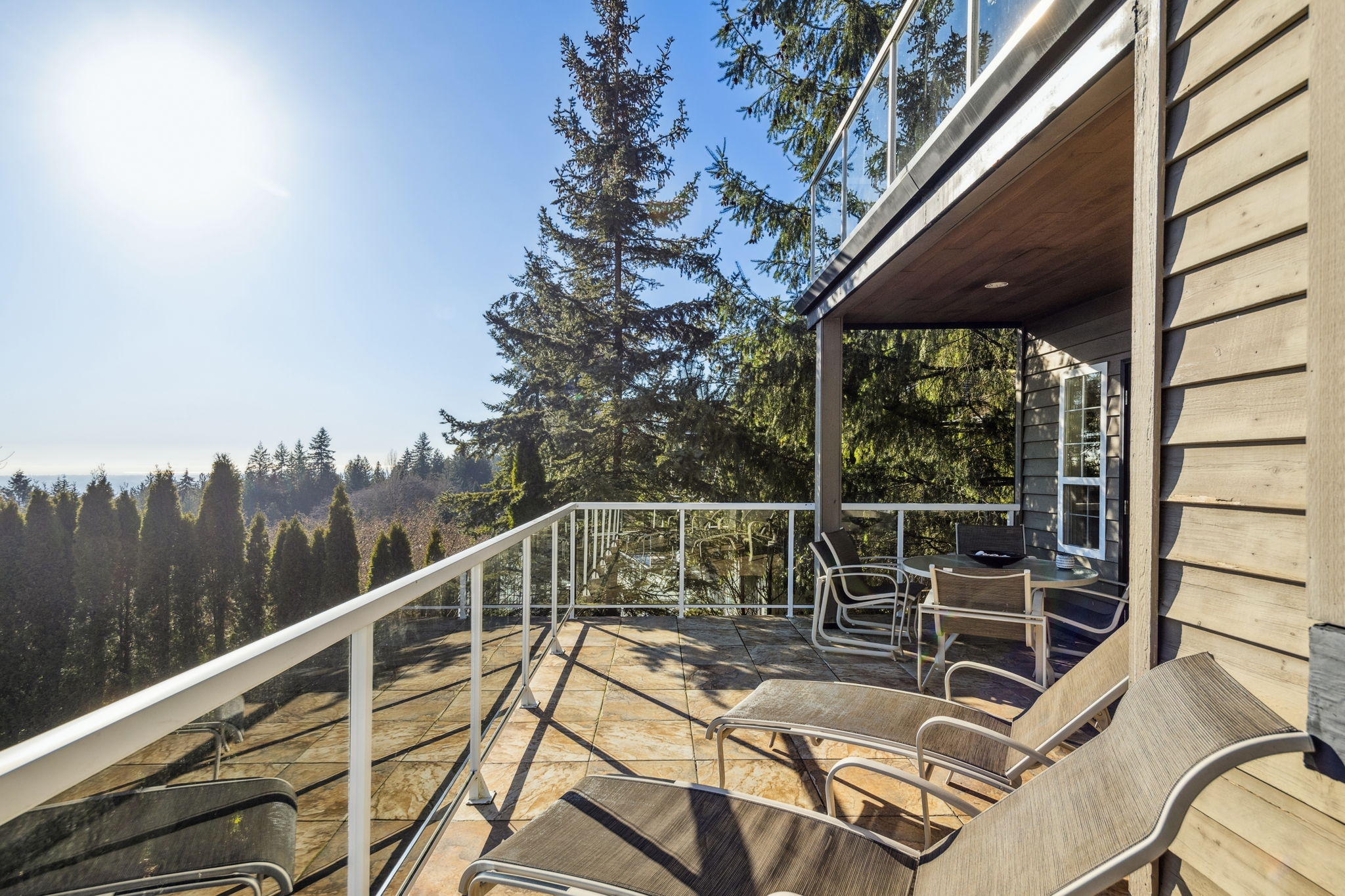 The main living spaces flow seamlessly to a large view deck, perfect for morning coffee, family dinners, or sunset gatherings, while the rear of the home offers a private patio retreat surrounded by mature greenery. Upstairs, four generous bedrooms provide space for a growing family, including a grand primary suite complete with an intimate fireplace, spa-inspired renovated ensuite, and breathtaking panoramic views that greet you every morning.