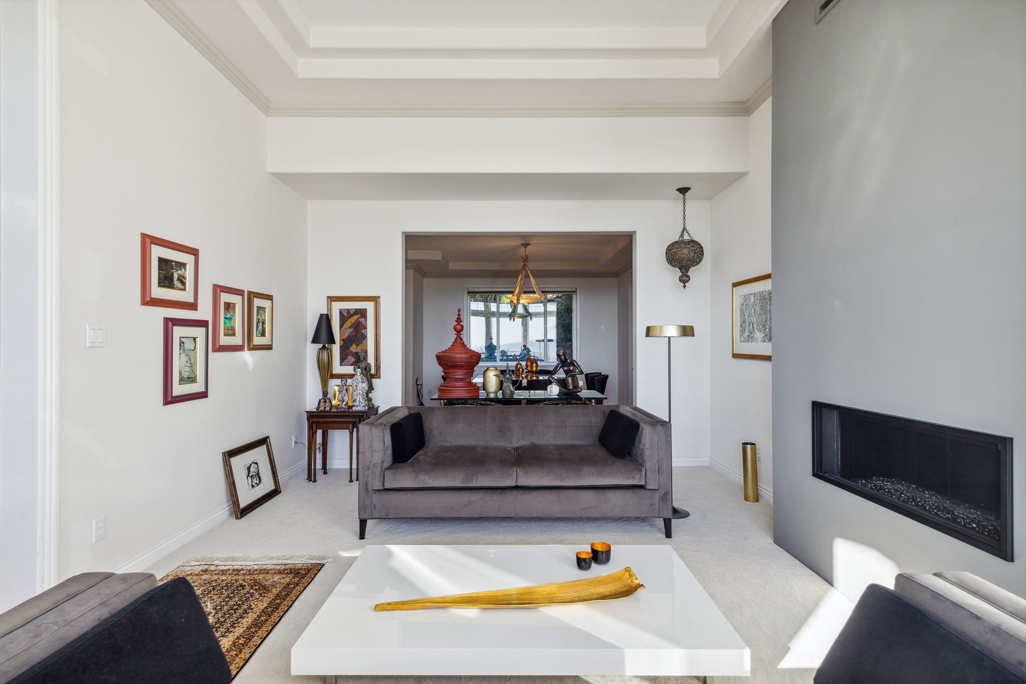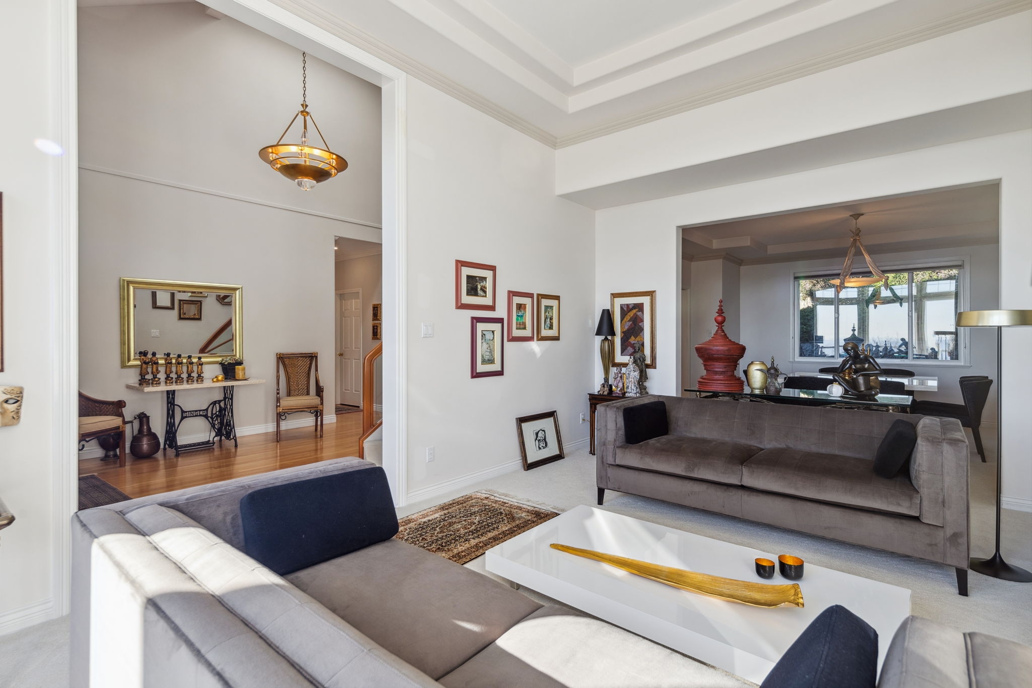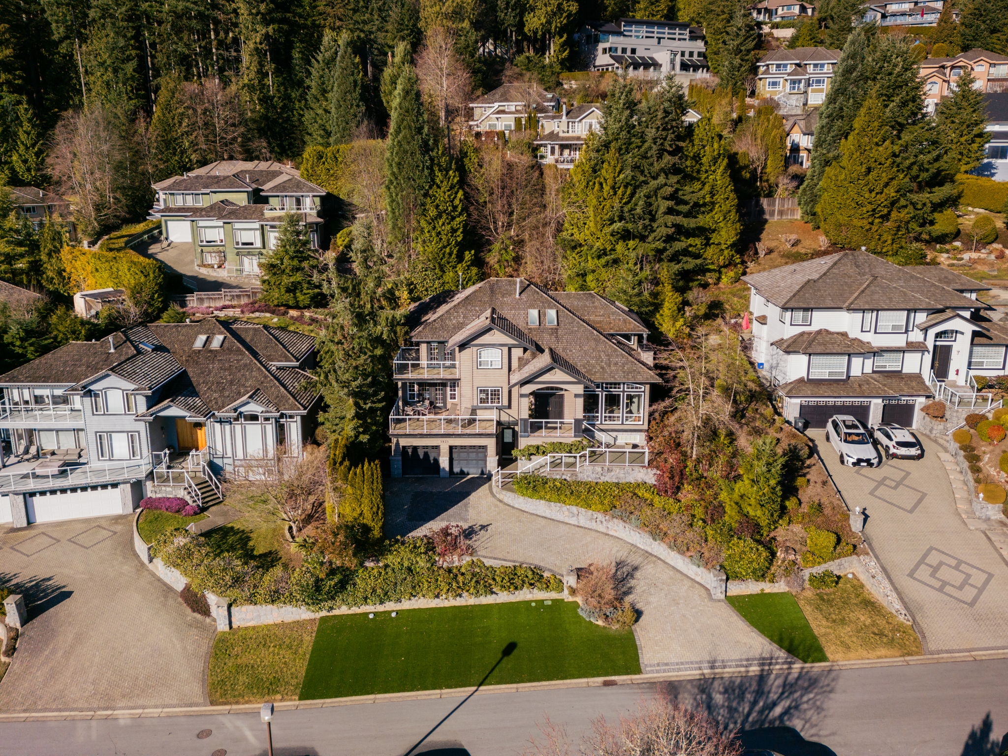 The main living spaces flow seamlessly to a large view deck, perfect for morning coffee, family dinners, or sunset gatherings, while the rear of the home offers a private patio retreat surrounded by mature greenery. Upstairs, four generous bedrooms provide space for a growing family, including a grand primary suite complete with an intimate fireplace, spa-inspired renovated ensuite, and breathtaking panoramic views that greet you every morning.
