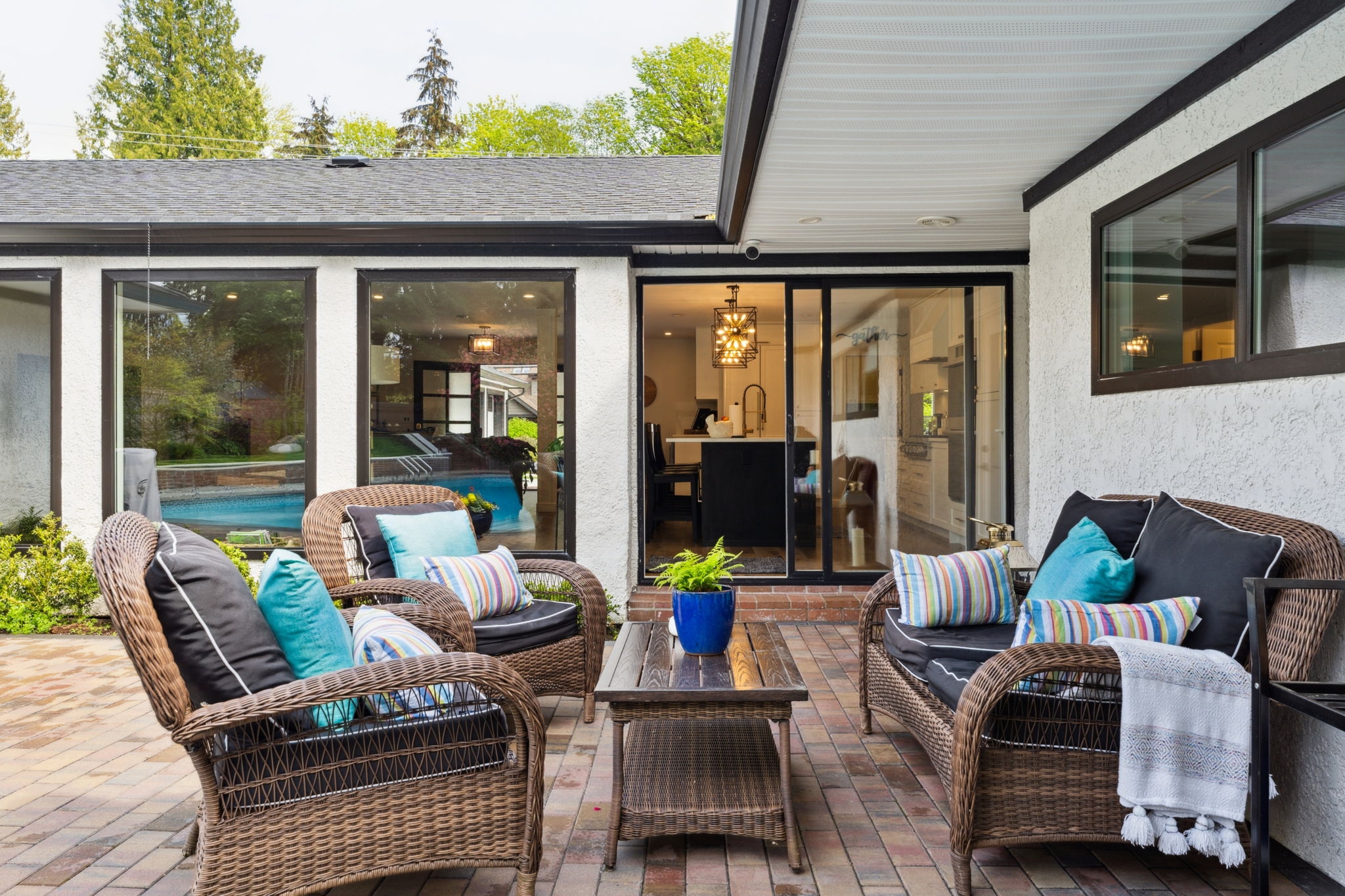 3061 Bewicke Ave. is a fully renovated 3,000 sq ft “California Style” L return rancher on a 14, 490 sq ft lot w. swimming pool unlike most offerings in current market. It features 4 bedrooms & 4 bathrooms, 3 of which are ensuited. The west facing rear yard is private & offers a throw back mid century layout with all principle rooms opening to the large pool/hot tub & outdoor space highlighted by a large Primary ensuite & huge walk in on South wing w amazing mountain views. Numerous walls were knocked out during the modernized renovation that left no stone unturned. On entry the great room links the 2 wings of the home & integrates the outdoor & indoor entertainment concept that make this homes so special. The muscle behind the walls is complimentary of all the work that you can see & boasts new electrical, plumbing & heating infrastructure that anyone would appreciate incl. the pool equipment & heater. The location affords quick access to all the shops, services & amenities of Westview & Edgemont village. William Griffin pool & the Delbrook community center are located 2 minutes from your front door & recreation opportunities re: skiing, hiking riding are endless. If something different is what you are looking for then this is your place! A must see opportunity.