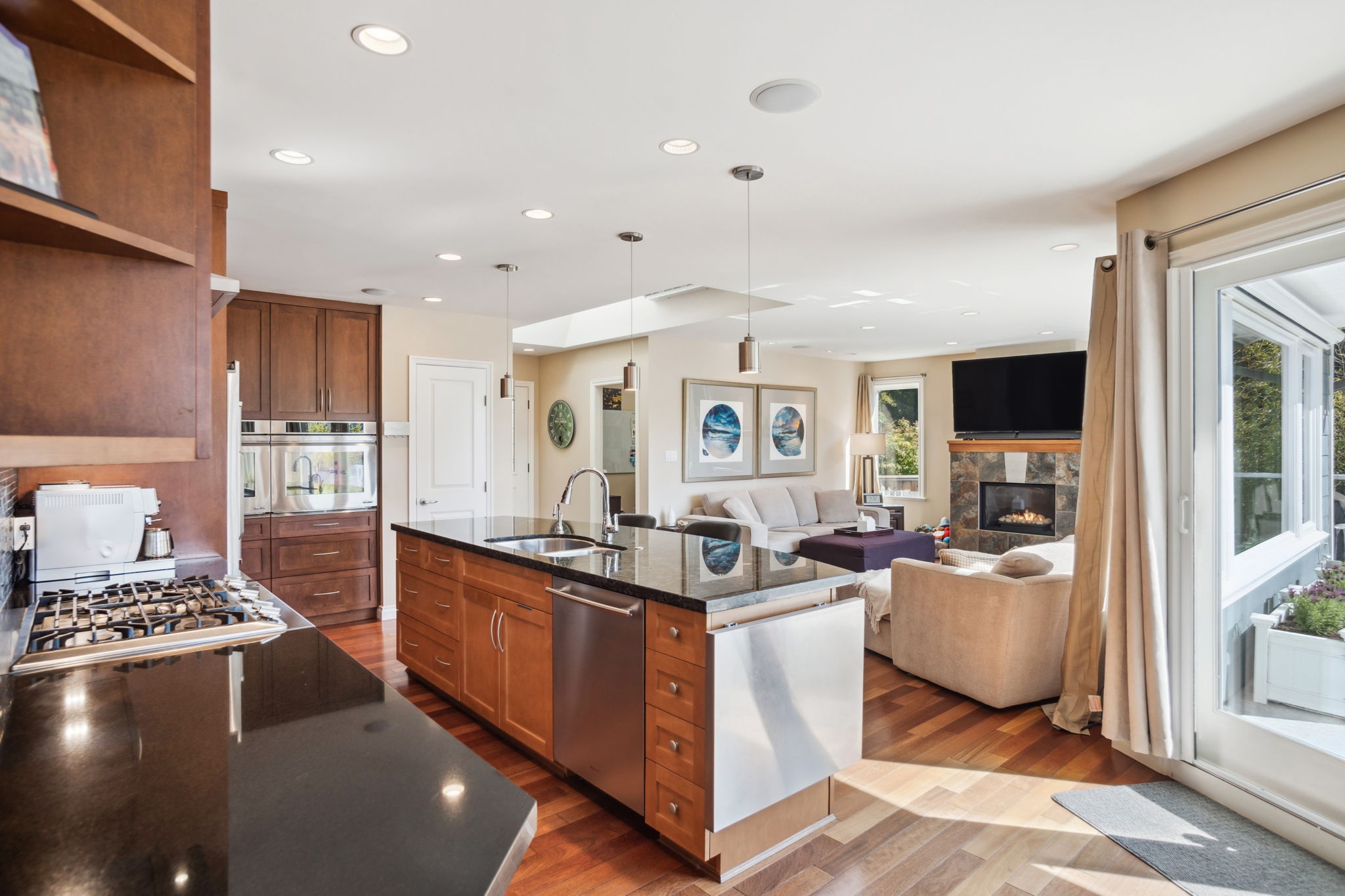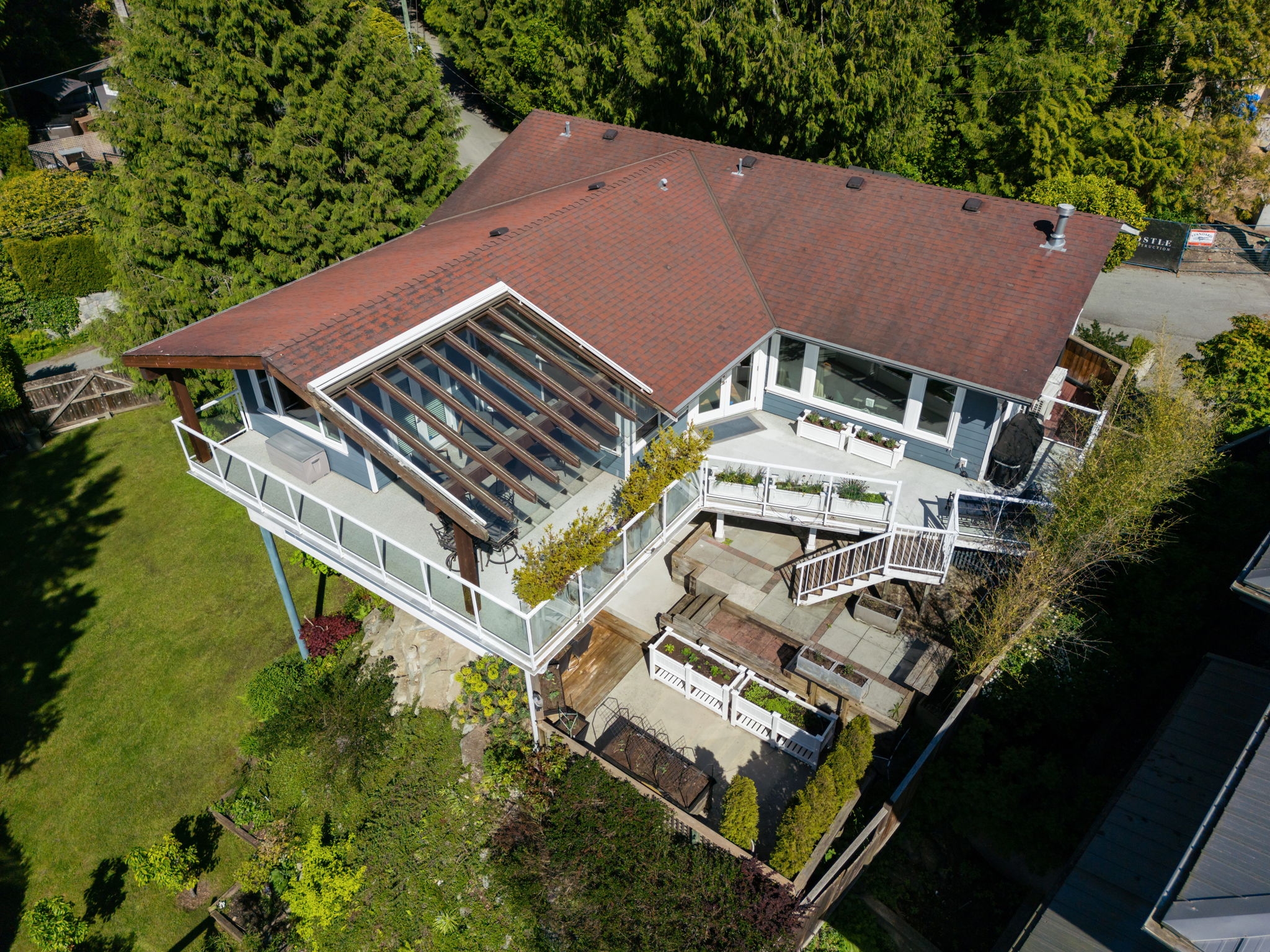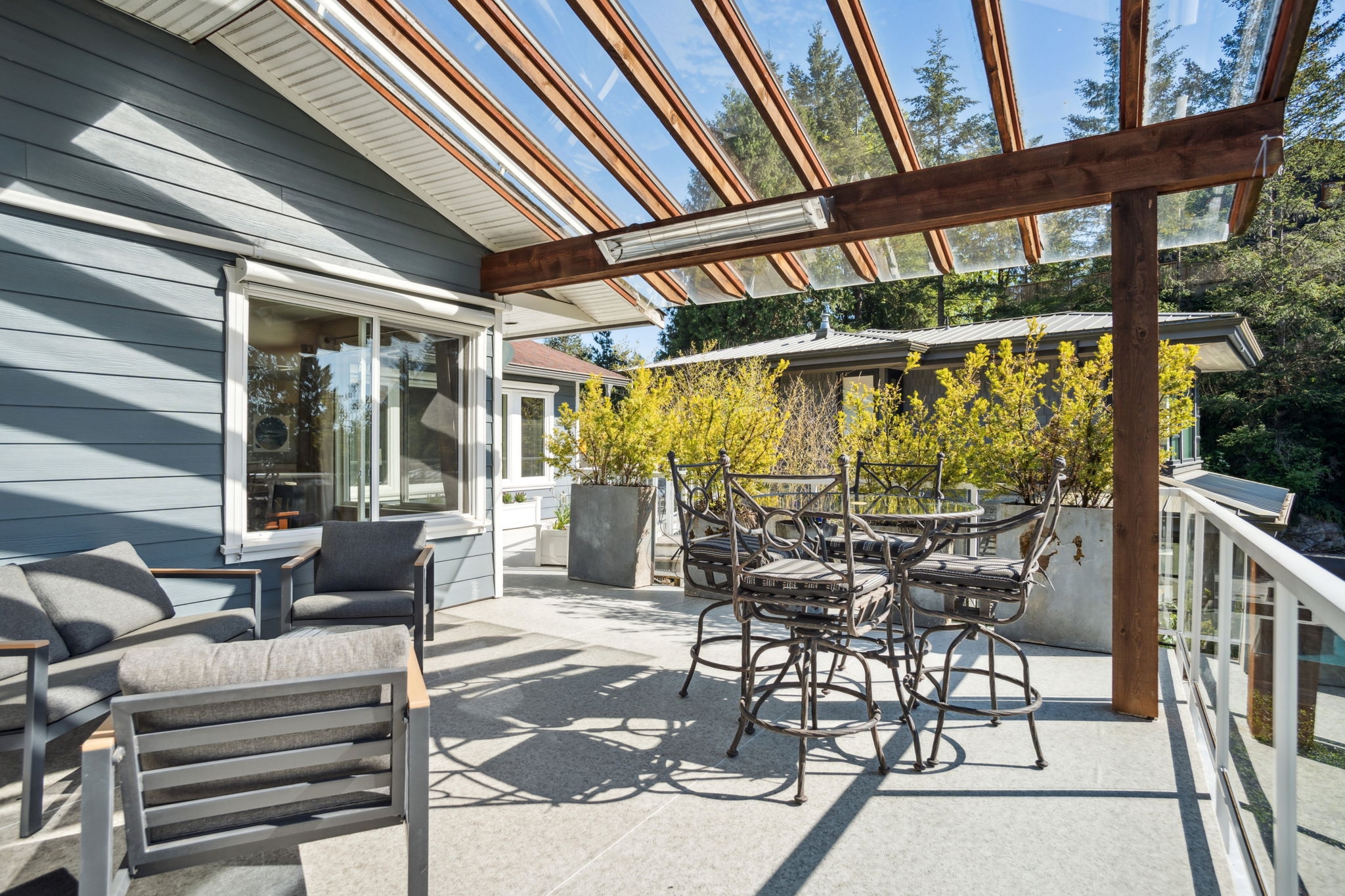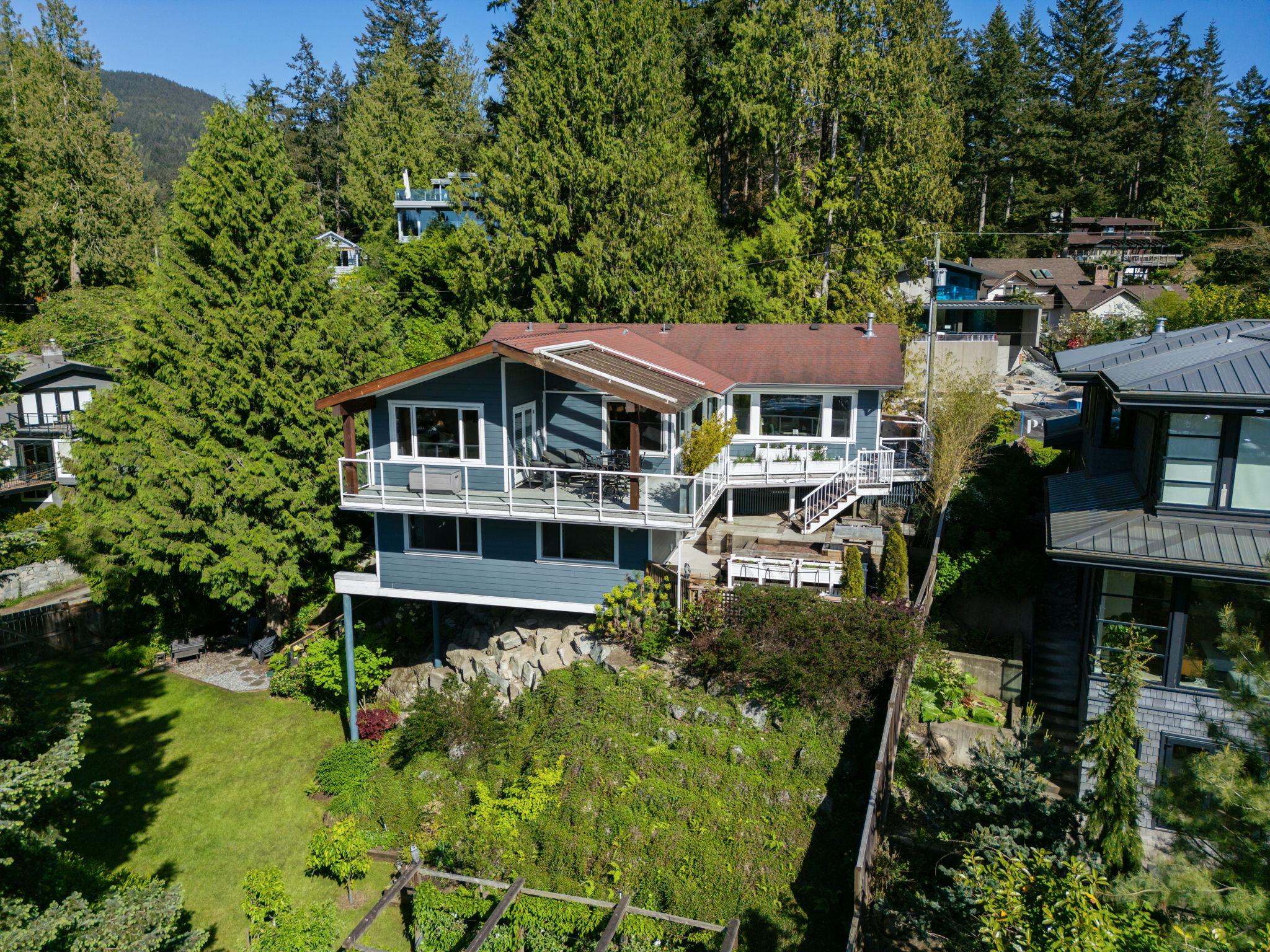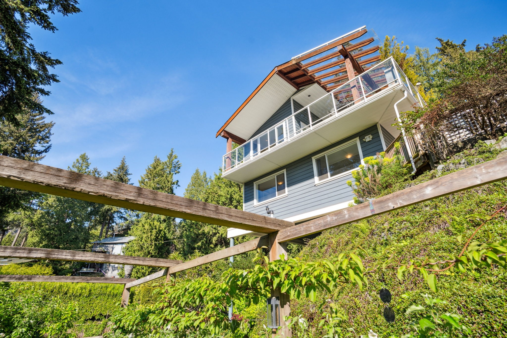 A beautiful Eagle Harbour Bungalow, 5755 Telegraph Trail is unlike any other home in the area. Perched high atop an almost 12,000 sq ft Seaside view lot this 3 bedroom/3 bathroom residence is beyond special. On approach, the Hardiplank-clad home exudes an undeniable pride of ownership. The main floor boasts a level living space & offers a fully remodelled gourmet kitchen, hardwood floors, air conditioning with principal rooms benefitting from a wraparound covered deck & windows that integrate a Primary ensuite, dining/living & kitchen with outdoor space, beautiful apple trees & garden below.