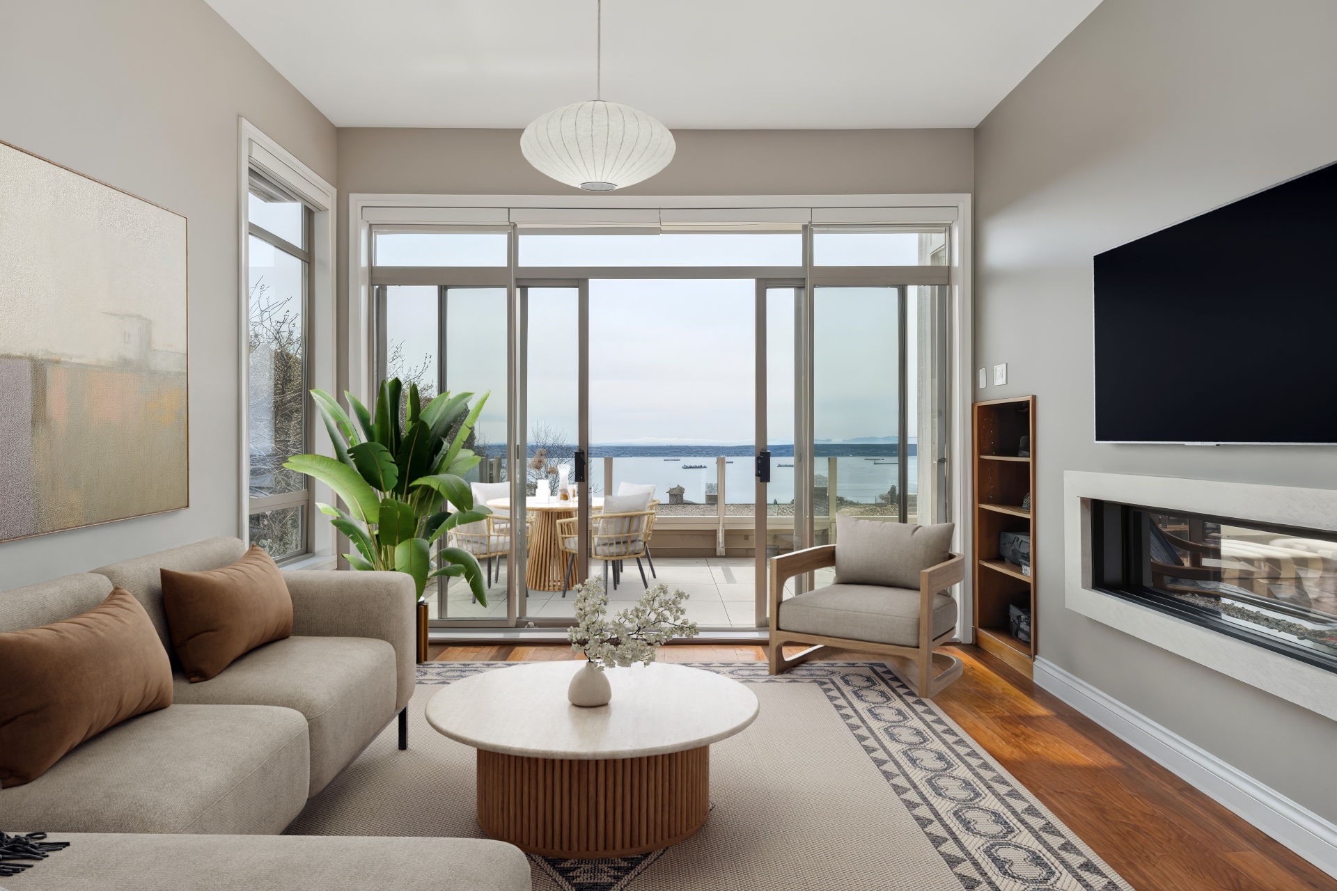 One of the best “Salishan” has to offer! This comprehensively updated residence boasts 3 bedrooms & 4 bathrooms with primary ensuite on main floor in the best location possible. On entry the 12 ft ceilings lead you to a world class outlook that is breathtaking and enjoyed by every principle room on both levels.
